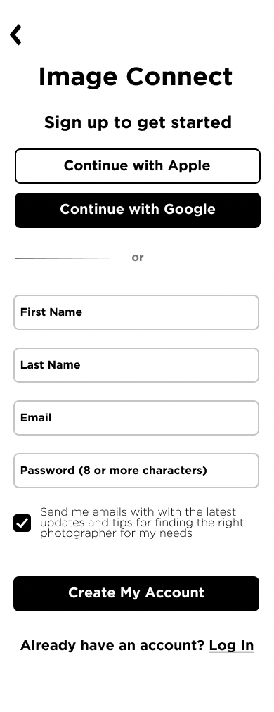 In this case study we’re going to walkthrough the process of building out the MVP for Image Connect, a platform designed to connect photographers with potential clients and streamline the process of booking contracts. The project goals were to build an end-to-end product that could reduce the friction for both photographers and their clients in the process of connecting each other and booking work.
