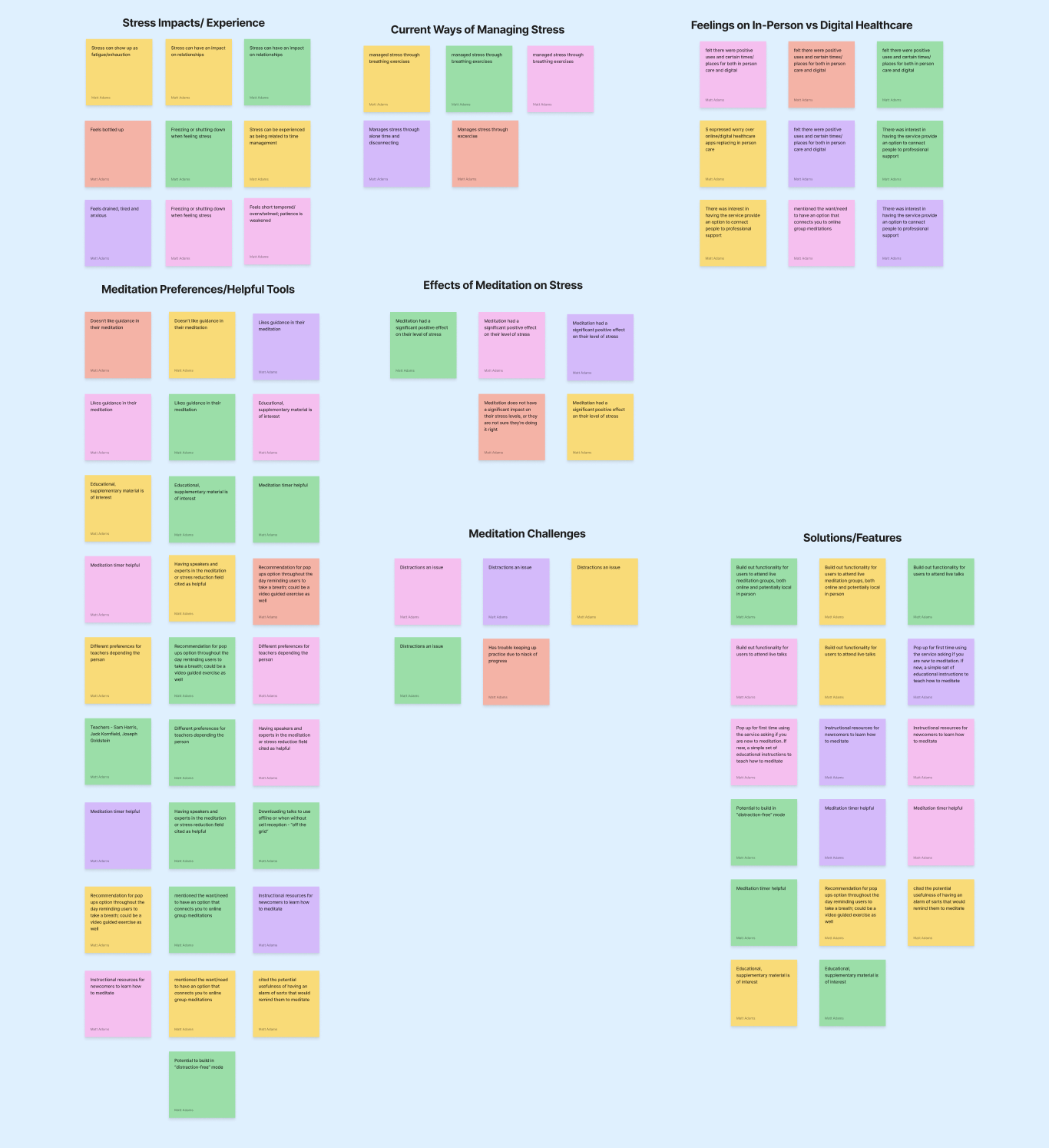 My goal with the research process was to understand how users currently cope with stress, their relationship with meditation and their current pain points with existing apps